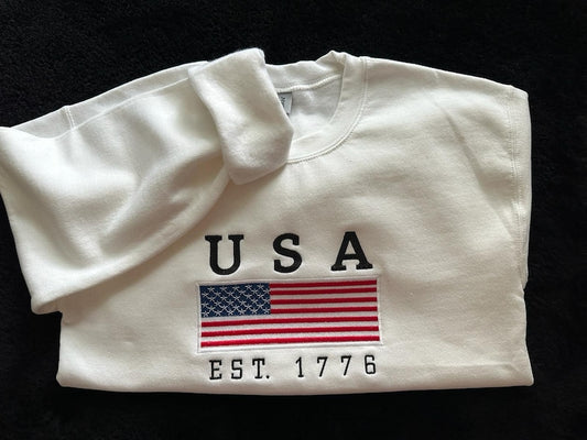 Custom USA EST 1776 Embroidery Sweatshirt, US Flag Sweatshirt