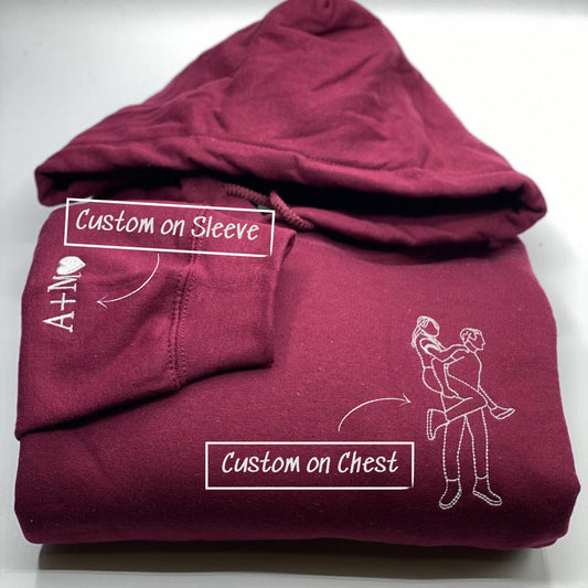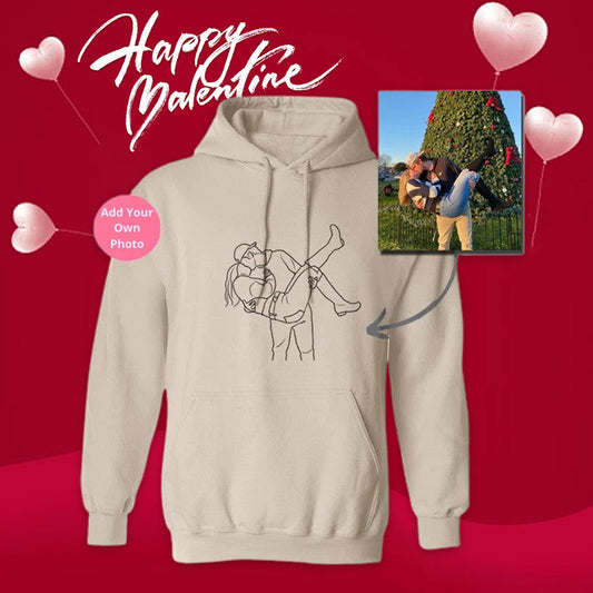Custom Photo Line Drawing Embroidered Couples Hoodies