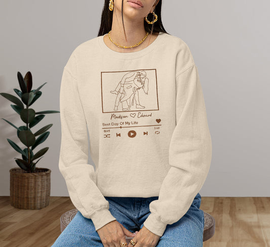 Custom Embroidered Portrait Sweatshirt With Song