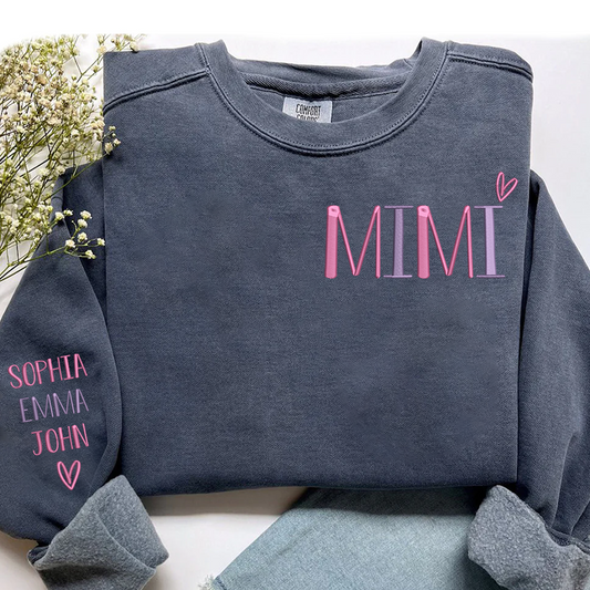 Embroidered MiMi Heart And Grandkids Sweatshirt