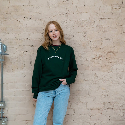 Overthinking Embroidered Sweatshirt - Funny Slogan Sweatshirt Gift for Her