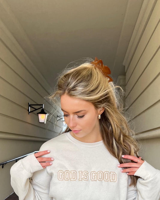 Good Is Good Embroidered Crewneck, Christian Based Clothing
