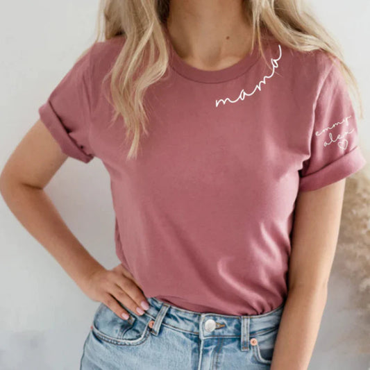 Embroidered Mama with Children's Names on the Sleeve, Mother's Day Gift
