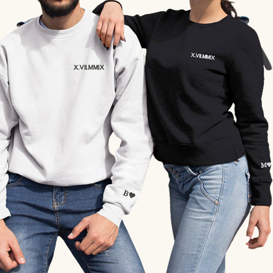 Personalized Embroidered Roman Numerals Couples Matching Sweatshirt, Hoodie
