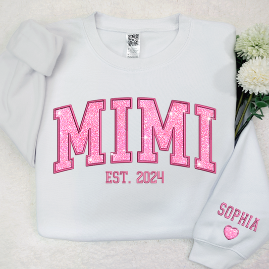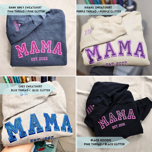 Personalized Mama EST Embroidered Glitter Sweatshirt With Kids Names