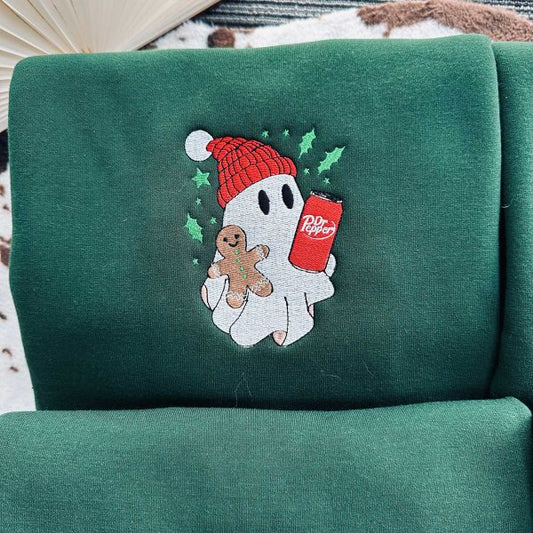 Personalized Christmas Ghost Drinking Embroidered Sweatshirt