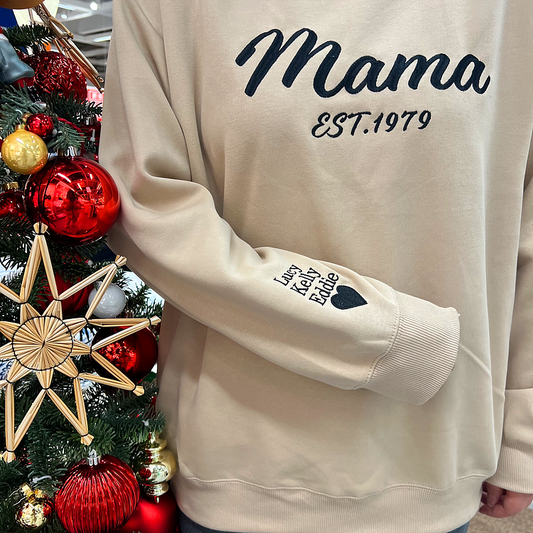 Embroidered Mama EST Year Sweatshirt with Names on the Sleeve