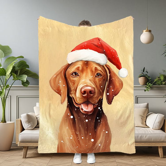 Custom Christmas Pet Portrait Blanket with Santa Hat & Snowflakes