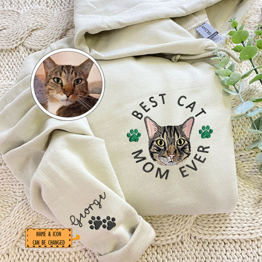 Custom Embroidered Best Cat Mom Ever Hoodie